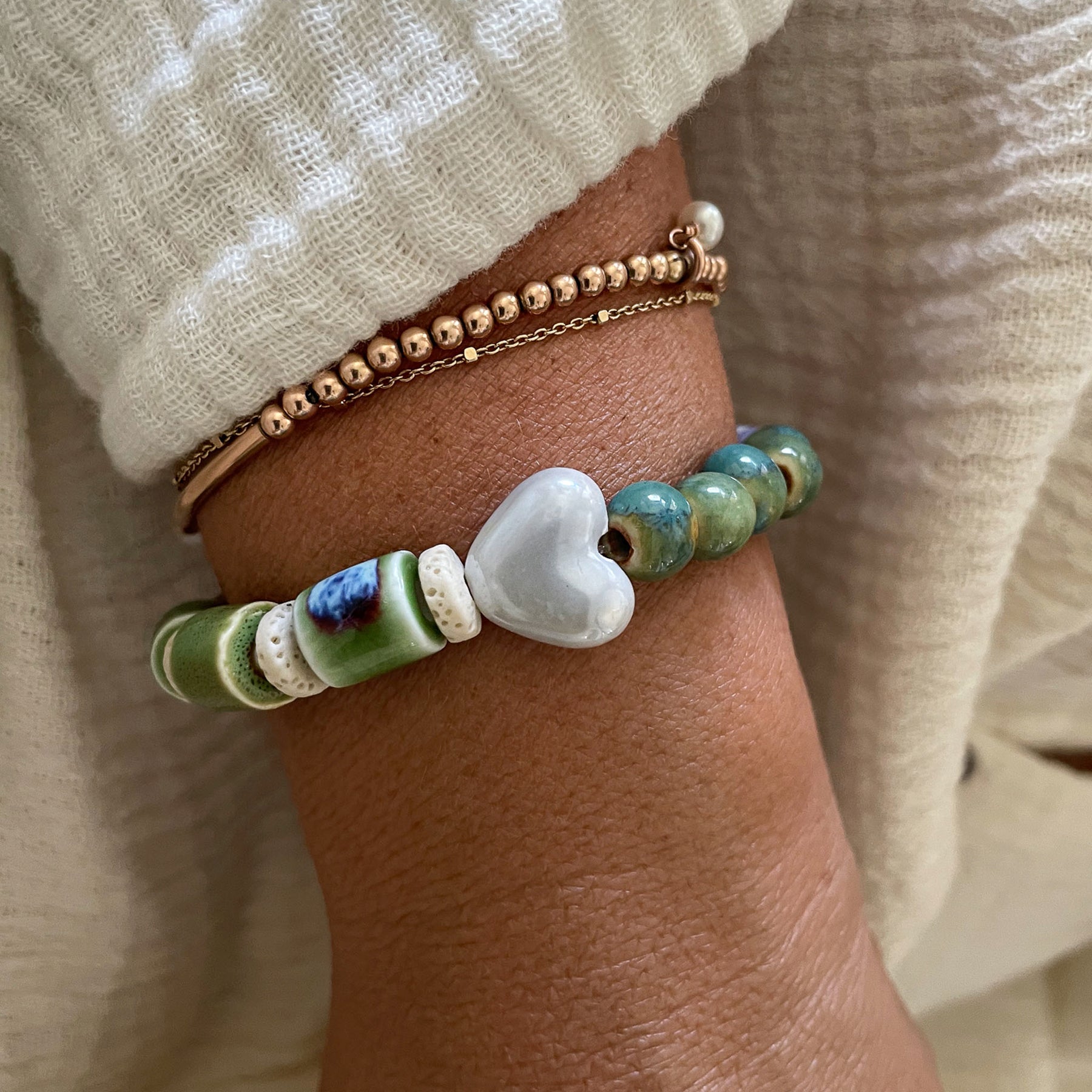 Soft greens move through the bracelet,